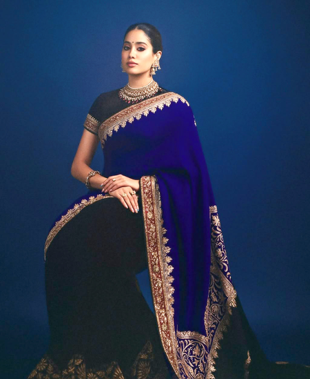 For the caption, Manish Malhotra wrote, “This one is really special to me… coming full circle… the one and only #Sridevi … an icon in every way and so close to my heart… first wore this heirloom royal blue pashmina saree in 2017. @janhvikapoor wore the same saree for the premiere of @homeboundthefilm a heartfelt tribute to her mother.”